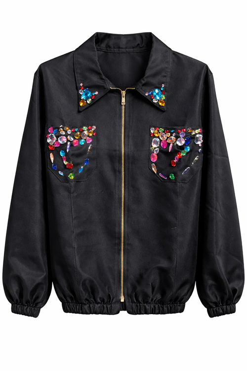 Abrigo Tipo Chamarra Negro con Pedrería | Mujer