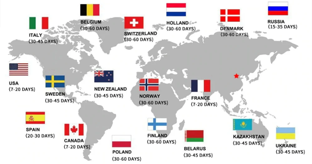 *La velocidad de entrega solo como referencia, a veces se retrasará por días festivos, festivales, mal tiempo, aduanas, etc.